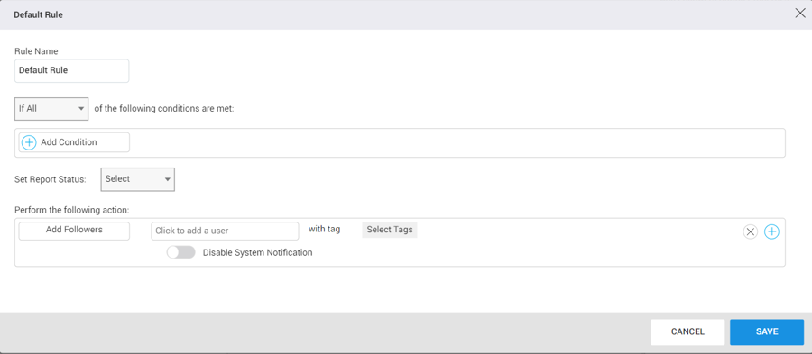 Set Report Status: This option enables users to set the status of reports based on the applied conditions. By default, the available conditions are "Open" and "Closed". Additional custom statuses can be configured using the "Custom Status" option in the user management settings.