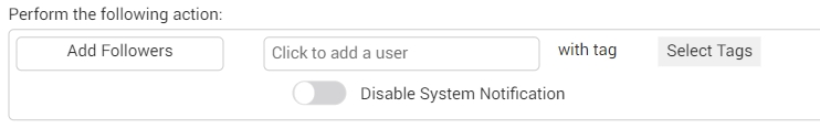 Add Action: This option allows users to define the Add followers action to be executed based on the specified conditions and adding the follower using the "Click to add a user" button.