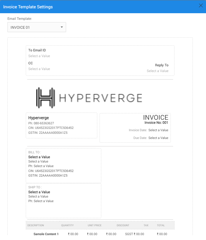 Invoice Configuration - This option automatically picks up the organizational details mentioned in the system.