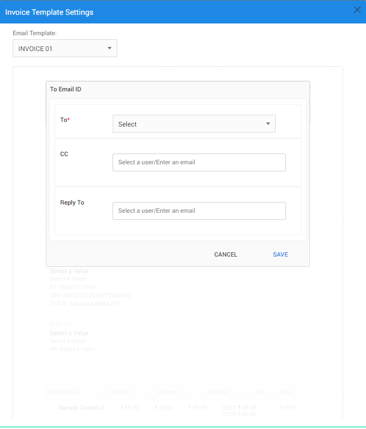 Bill To: Click on the Bill To section to add the details of the user or organization to whom the invoice is billed to.