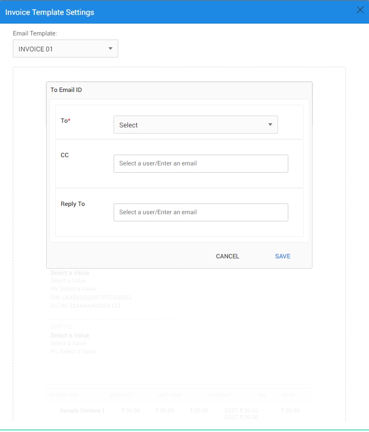 Configure recipients: Define the recipients of the invoice, users to be added in CC and Reply To conditions.
