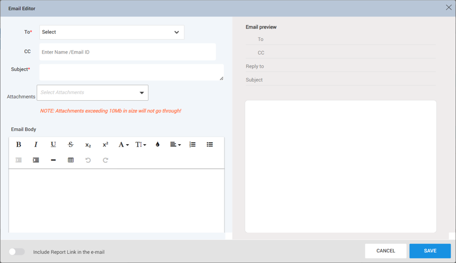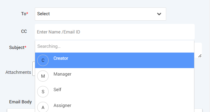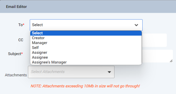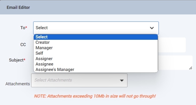 Attachments - This option is used to add the add the attachments to be sent with the email.