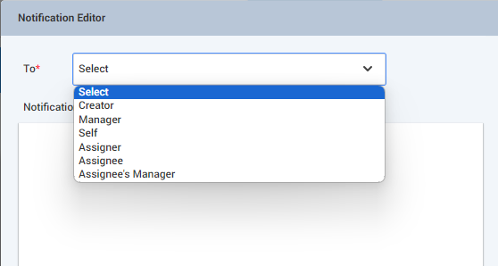 To - This option is used to select the recipient of the notification message.