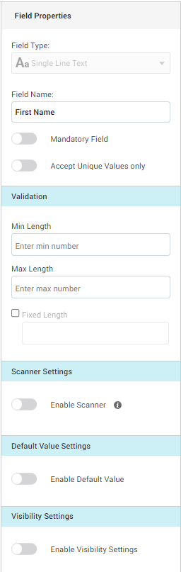 Min Length: By setting the minimum length, it establishes the minimum number of characters required for the field's value.