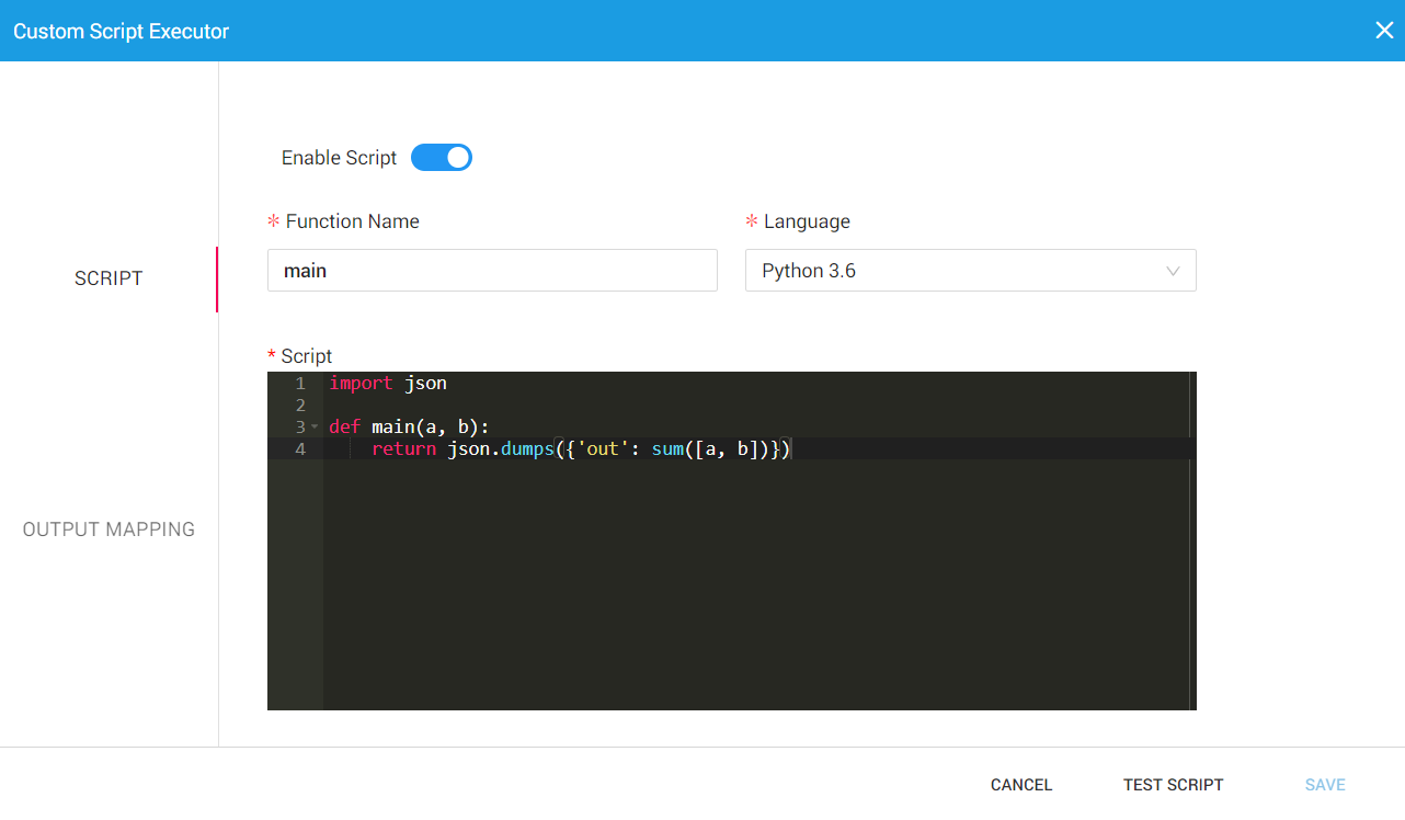 Enable Script: This option enables the use to custom script as per the business needs.