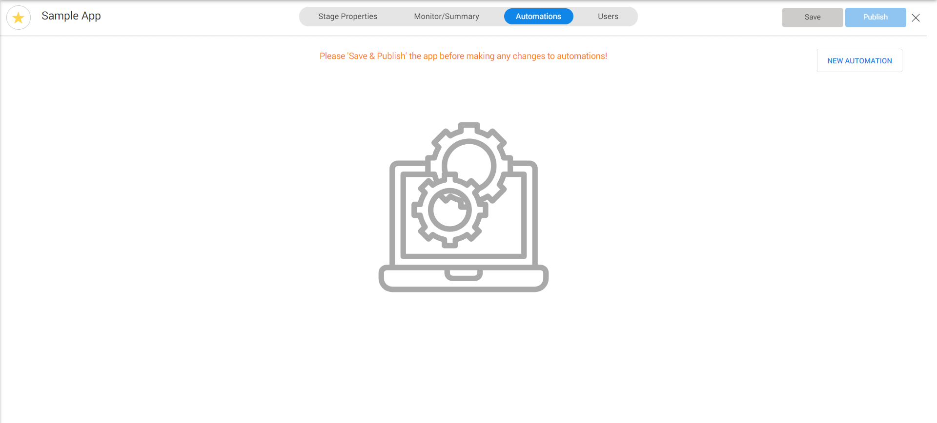 The NEW AUTOMATION button facilitates the option to configure automation in the app.