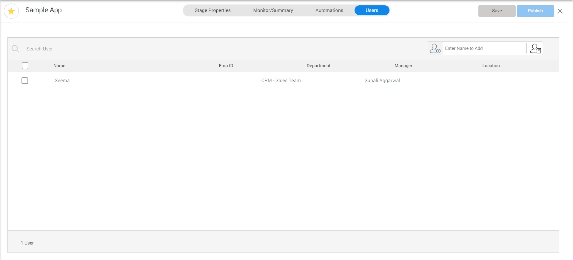 By clicking on the search and add user bar and entering the name of the user, administrators can quickly add new users to the app.