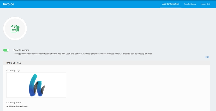 Enable Invoice (Toggle): This option allows users to activate the feature for generating invoices. Enabling this toggle grants users the capability to generate invoices seamlessly within the application.
