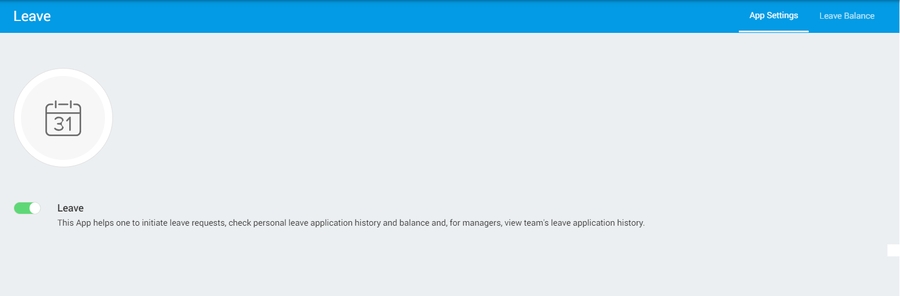 Leave (Toggle): Enabling this toggle provides users with the capability to manage their leave requests and related activities within the application.