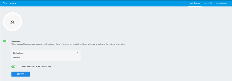 Customer (Toggle): This option allows users to enable customers data accessibility functionality within the app.