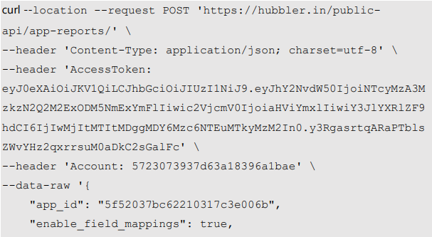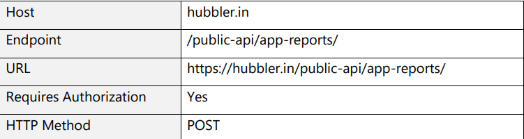 To fetch the report, you must pass the id of the app in the payload.