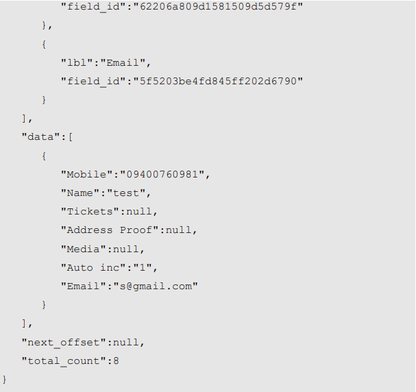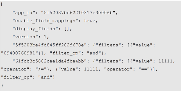 The Reports API enables you to fetch reports with respect to an app and its field mappings consist of field ids and field names and also have filter and projection functionalities.