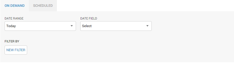 - Once the app is selected, determine if the report needs to be extracted on demand or scheduled.  - On Demand - Date Range - This option is used to define the time frame of the report.
