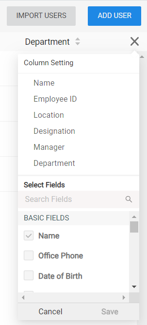 Select Fields - Displays the list of additional options that can be selected to be displayed.