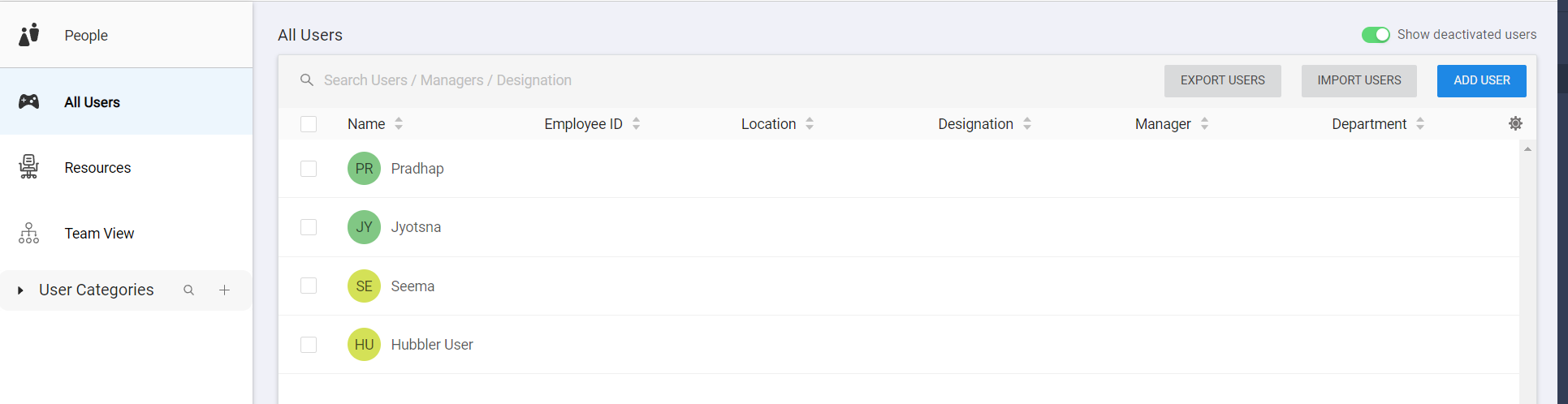 Show deactivated users