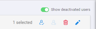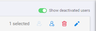 Start by clicking on the "Show Deactivated Users" toggle to reveal the list of users who have been deactivated, each marked with a Prohibition icon.