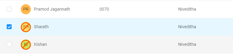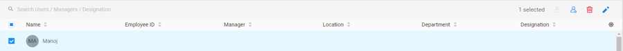 Locate and click on the "Deactivate User" icon available on the right top corner of the canvas. This icon will become visible after selecting the user.