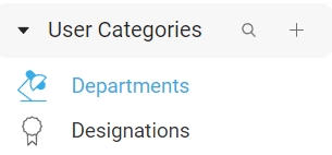 There are two default categories enabled in the system - Departments and Designations. These are hard coded categories visible across all users. Users can add departments by clicking on the Add Department button on the top left corner and can also bulk import departments using the Import Department option. Multiple departments can be added by clicking on the + icon in front of each added option.