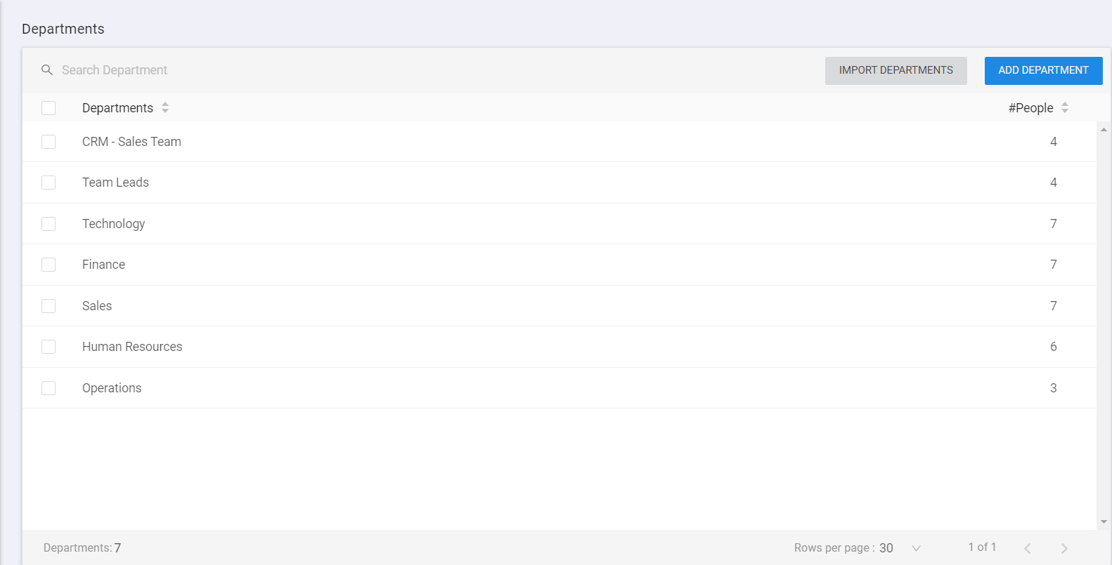 If needed, multiple departments can be imported in bulk using the "Import Department" button in the top right corner.